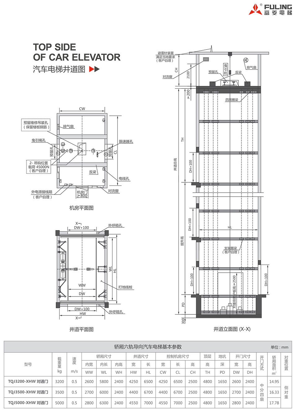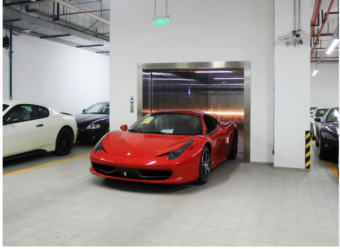 The elevator, adopting six-track guiding, not only meets the requirement of carrying cars, but also prevents the elevator p;atform from deformation